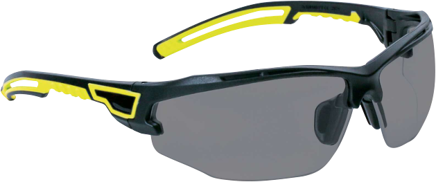 Very comfortable smoked-lens safety glasses with adjustable nose bridge and bi-material arms
