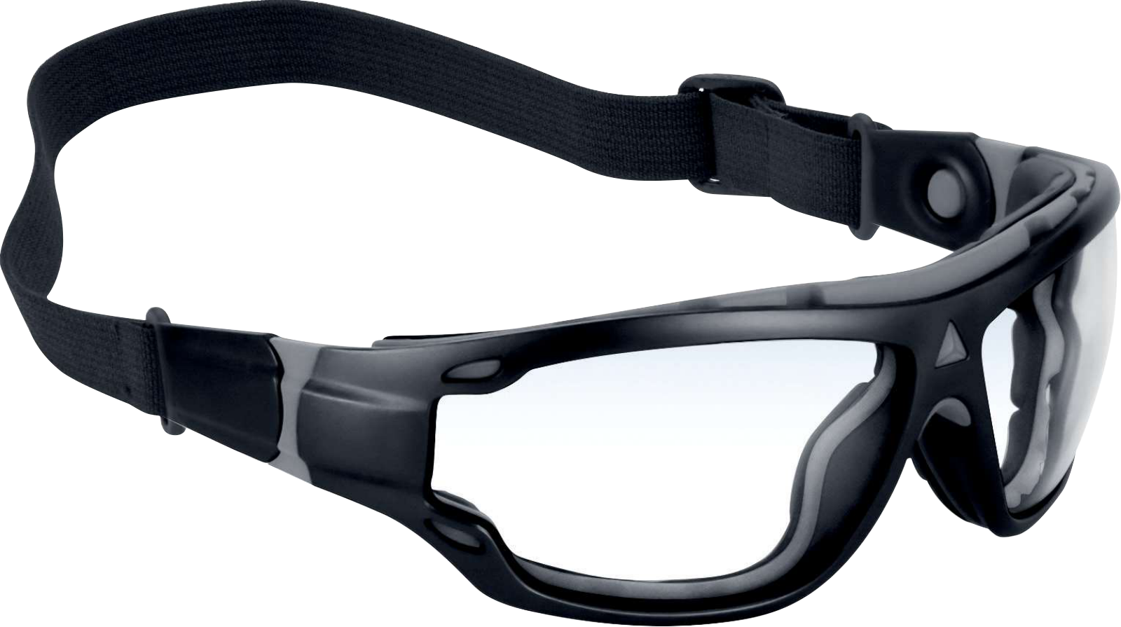 2-in-1 clear-lens goggles with foam protection for use with temples or strap