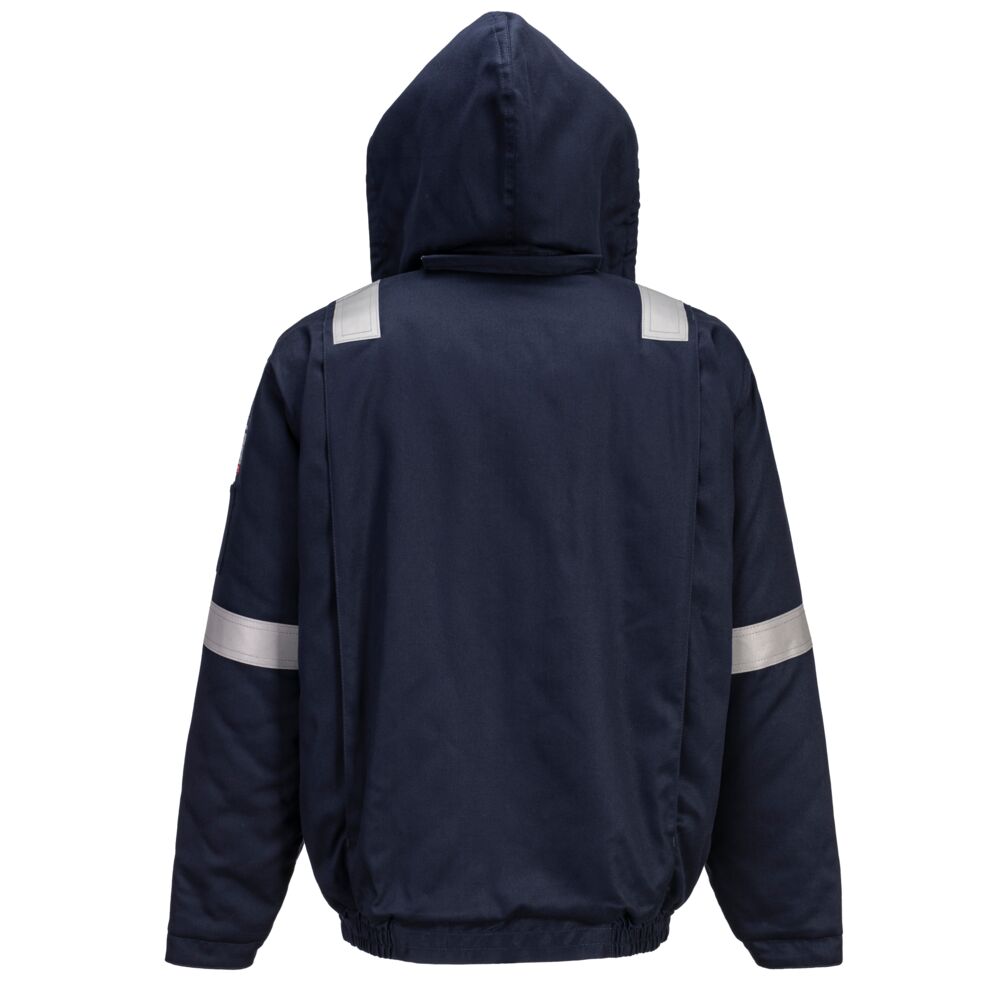 An outerwear staple for almost any work environment, this bomber jacket is designed to be provide lightweight warmth with trustworthy safety features. Rugged and comfortable, this jacket’s superior heat retention and sleek utility style make it cold weather ready. Generously insulated, the front storm flap and elasticated waist prevent the cold from seeping in.
