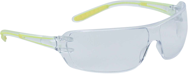 Ultra-lightweight clear-lens safety glasses with flexible arms