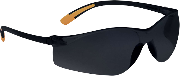 Lightweight, one-piece, smoked-lens safety glasses with non-slip tips