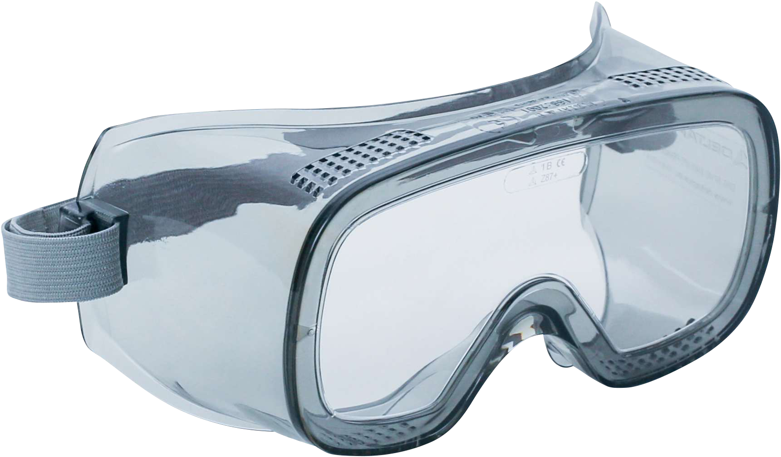 Clear-lens safety goggles with direct ventilation for short term use