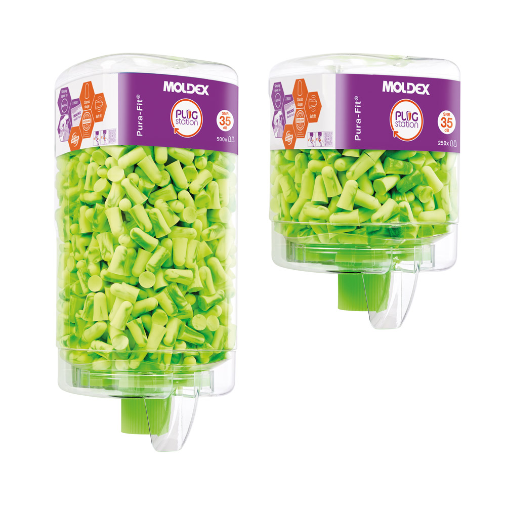 Configure your PlugStation according to your needs. PlugStation dispenser bottles are available with 250 or 500 pairs of earplugs. You will also need a wall mount. These are available with strong magnets or for fixing with screws. To refill, simply order a refill pack with the Moldex earplugs of your choice. Do you need a contactless or antibacterial dispenser mechanism? Our PlugStation earplug dispenser offers this too.